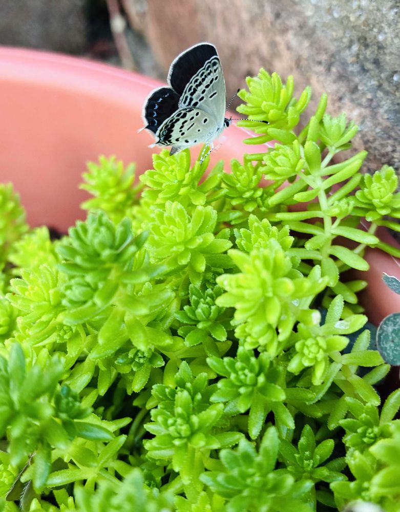 後ろのハネからチョロリ(尾状突起)が出てるからツバメシジミの仲間ですね🤔
