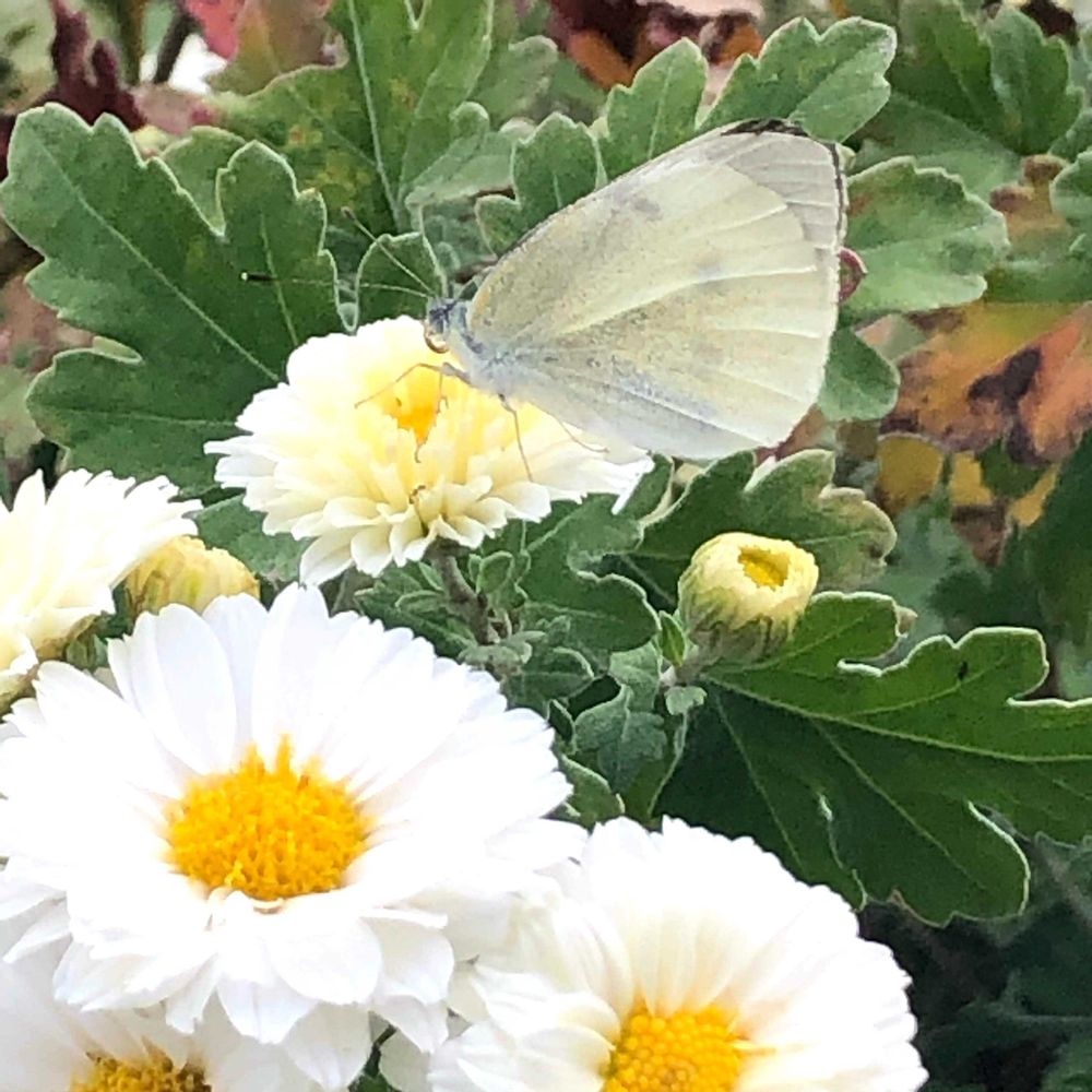 菊 キク,菊 丁子咲き,モンシロチョウ♡の投稿画像