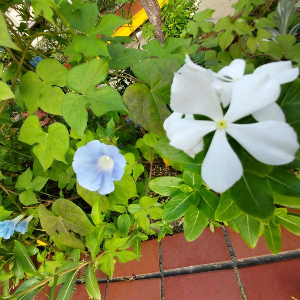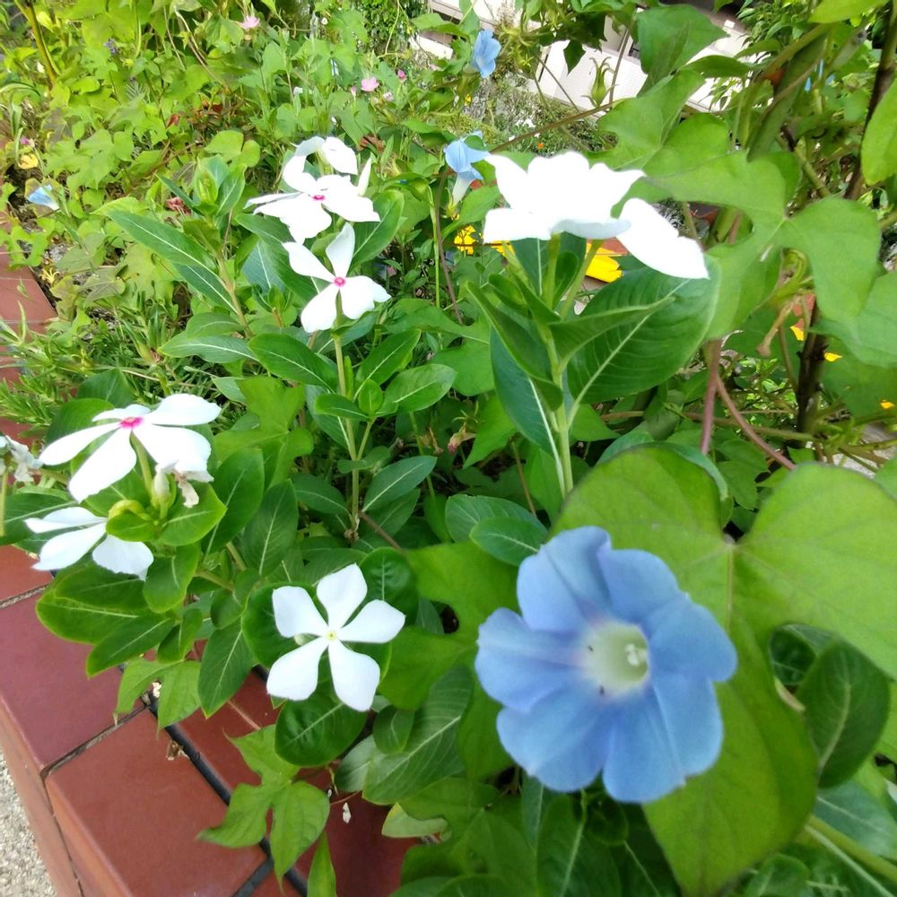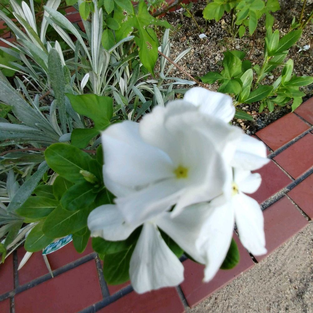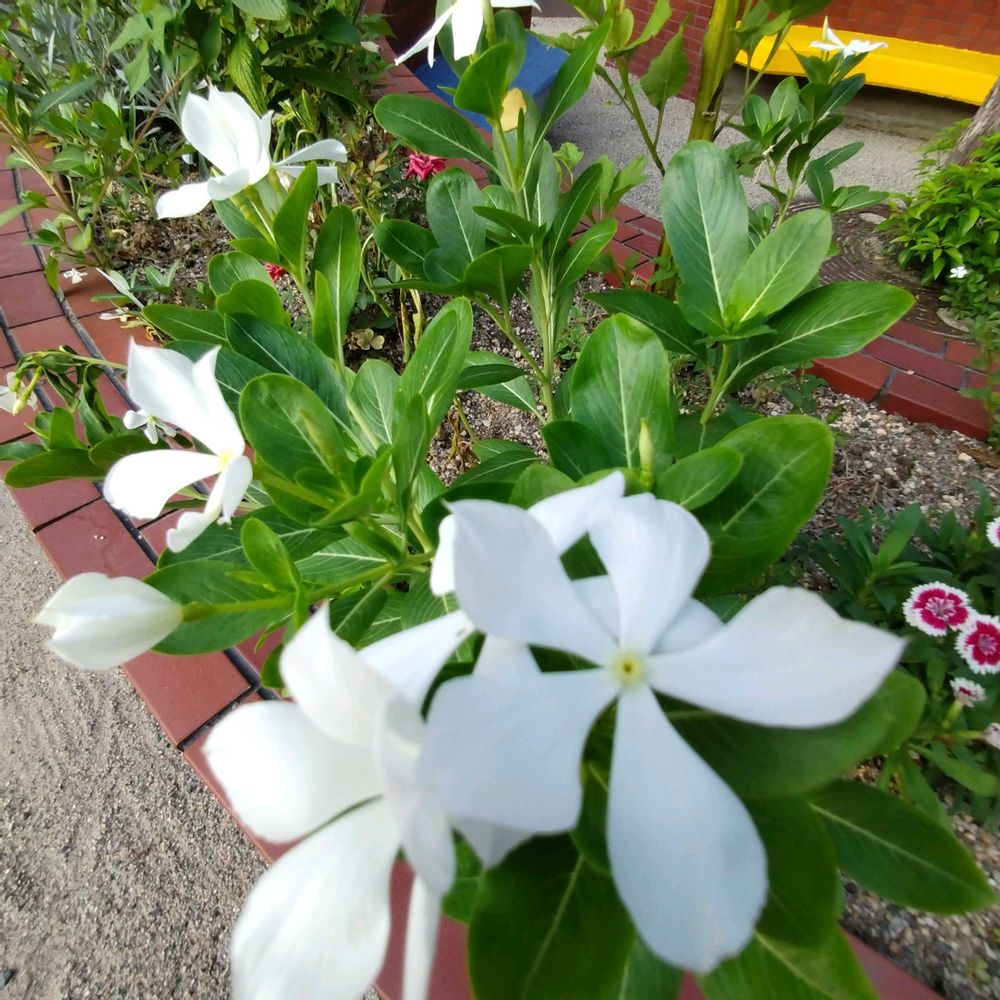 一階…花壇に…ニチニチソウ🤍🤍🌱🤍🤍🌿…