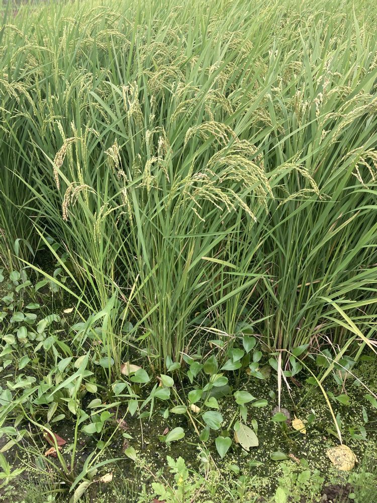 田んぼの稲刈りは既に済んで、カルガモが落穂を啄んでいたけど、公園の稲田の刈り取りはこれからだ。