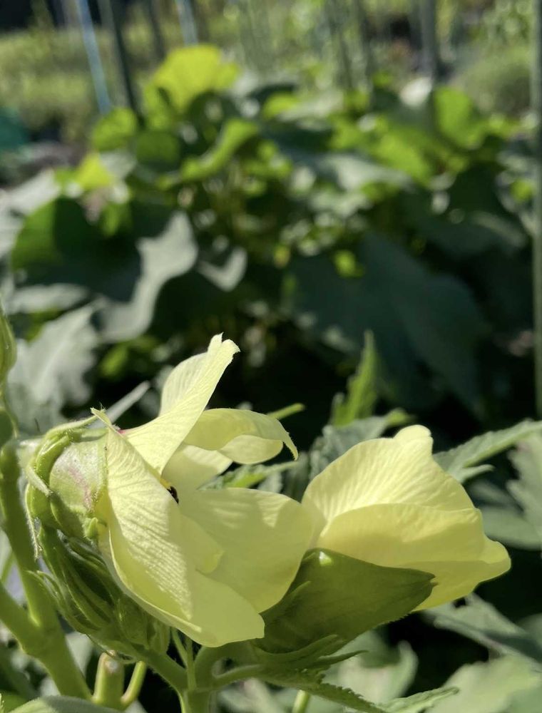 オクラの花 野菜の中ではかなりの美人さんだと思います😊