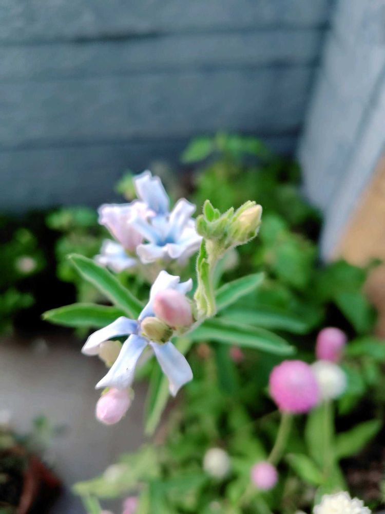 ①…バルコニーのブルースター🩵とセンニチコウ🩷