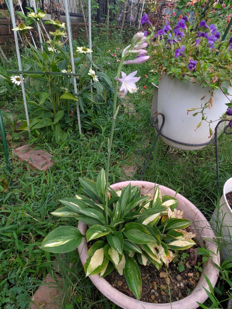 たぴちゃんちのギボウシはまだ咲いてるのね🤍💜🌿.∘