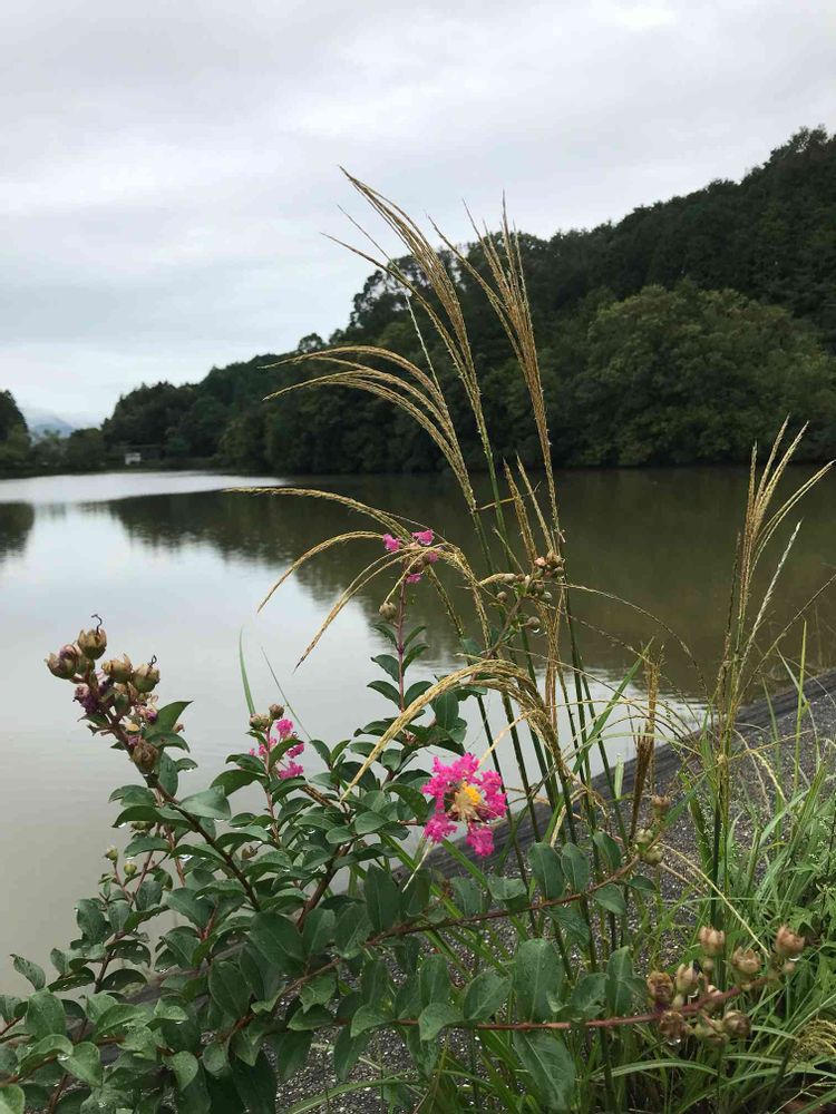 ため池のコンクリートの所に百日紅が咲いていました🌸