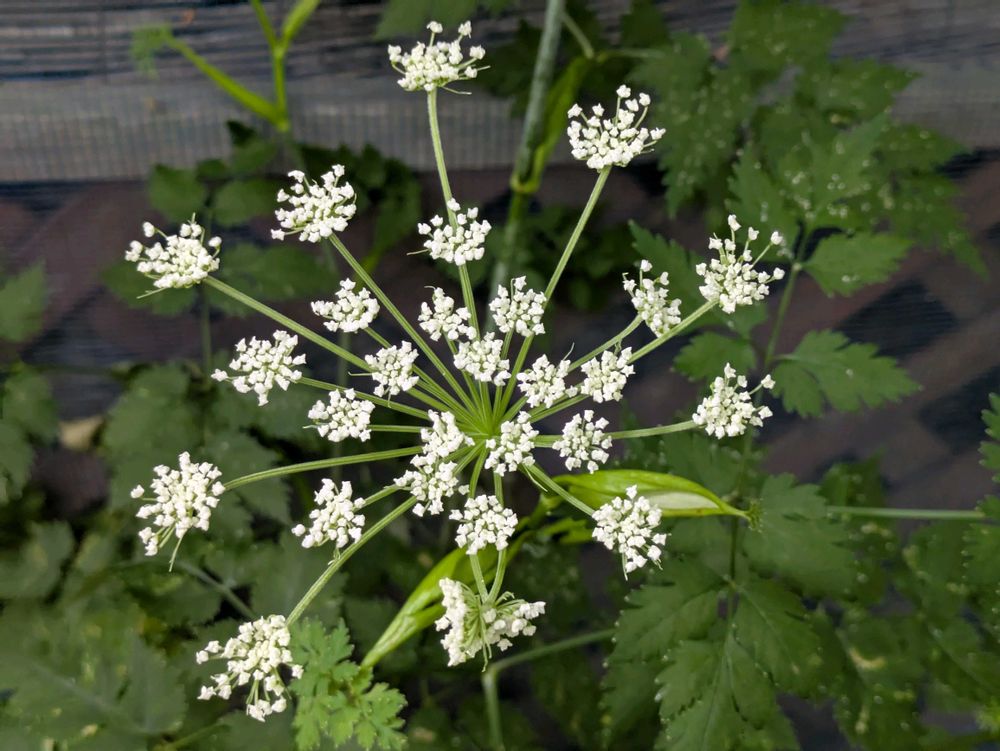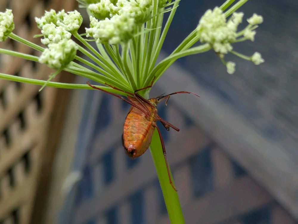 さて、判別しにくいセリ科ですが、どうでしょうか?花はキンモクセイのような匂いがします。カメムシも突き刺さってました。😁