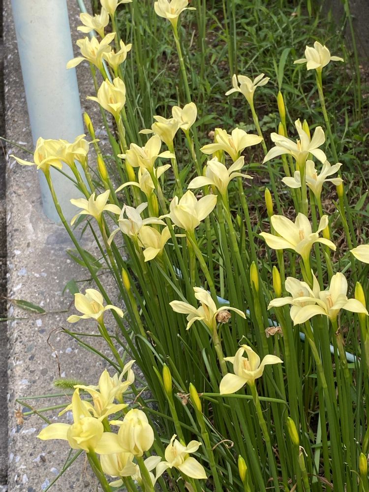 ゼフィランサスの淡いクリーム色は見かける機会無くて、今日は別の方からの写真も見れて、🤗🎶な気分です。