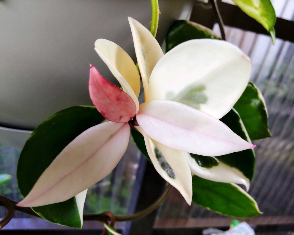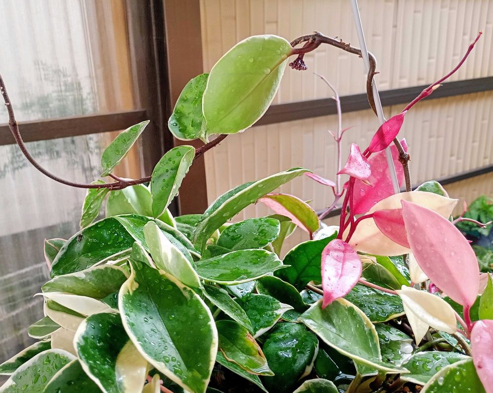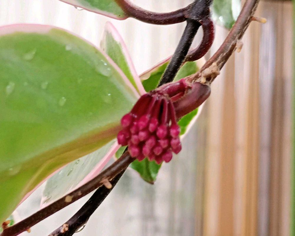 購入してからまる4年以上(?) 🌿ツル葉だけは成長。 皆さんが🆙されているような 花💮は咲くのかしら🥹❓と 伸びるツルと葉色を愛でながら 諦めていた「ホヤ、カルサーノ」
