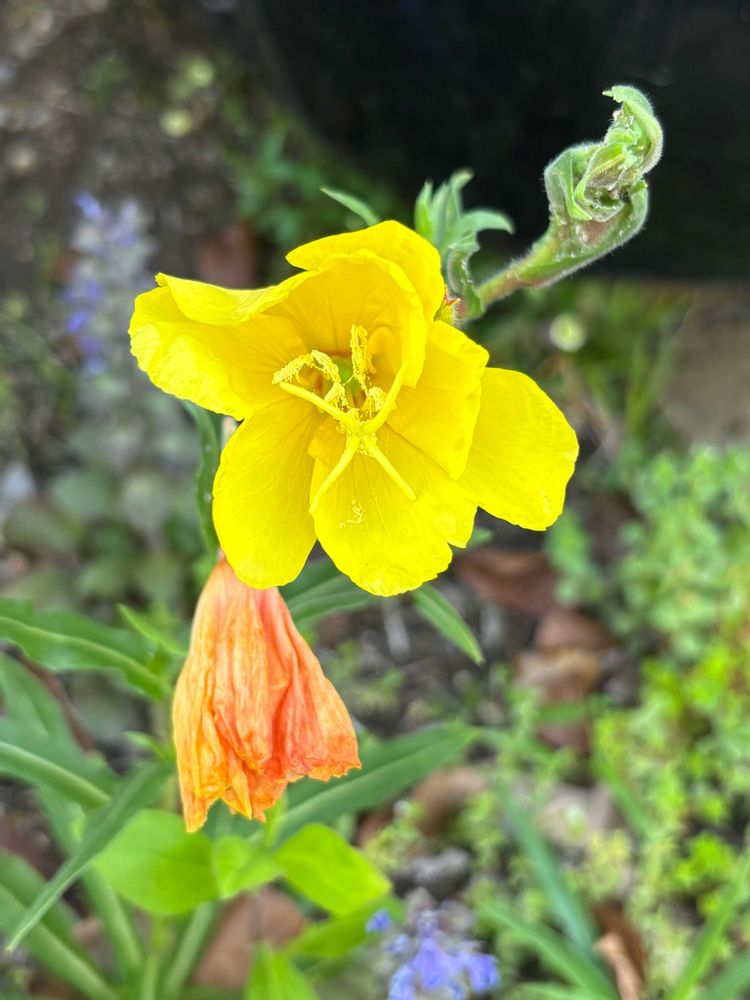 咲き始めは黄色で萎む時は赤っぽいオレンジ色になります。