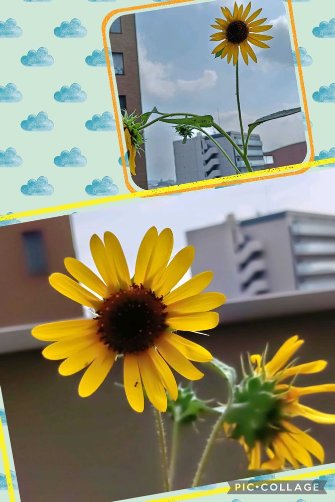 分岐して咲くひまわりだったようで、その後さらに高くなったお花が咲いているけど、最初のお花とは全然違う方を向いていて…😅