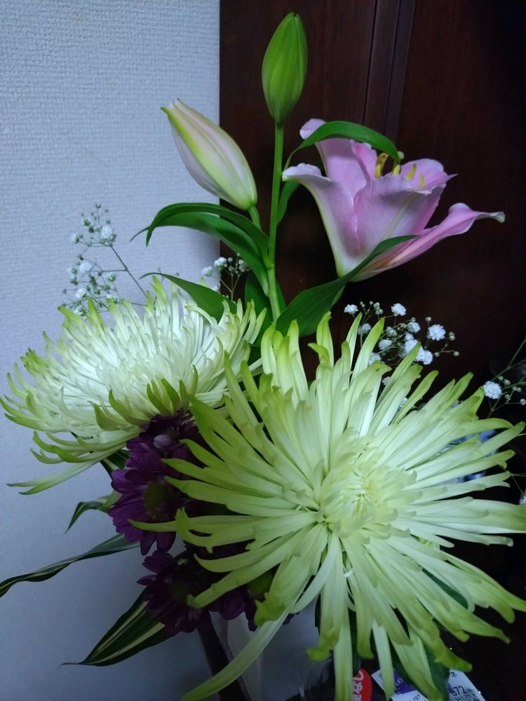 百合、かすみ草