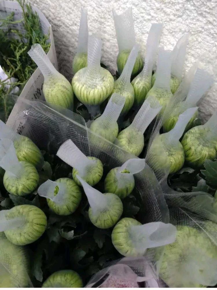 ❷のように販売していたのを覆いを取ったら大きな(14㌢)薄いグリーンの豪華なお花💚でした
