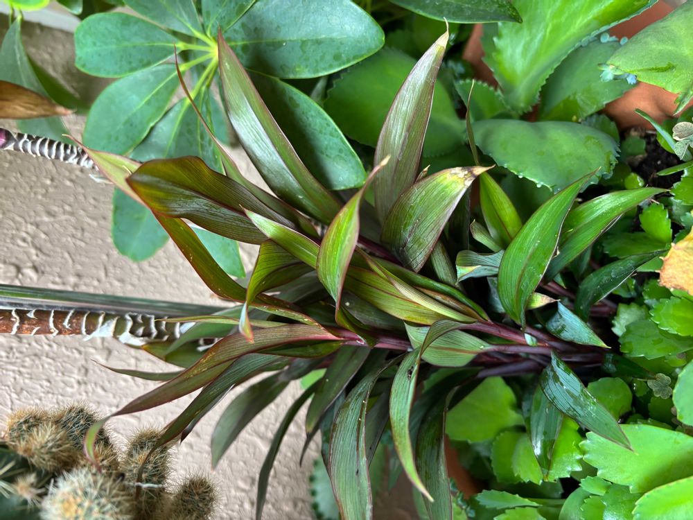 分かりづらいですが、コルジリネパープルの株元から生えてます
