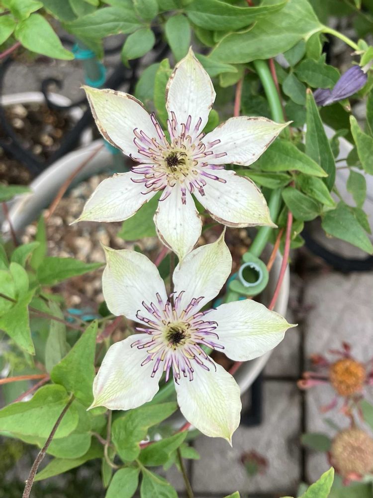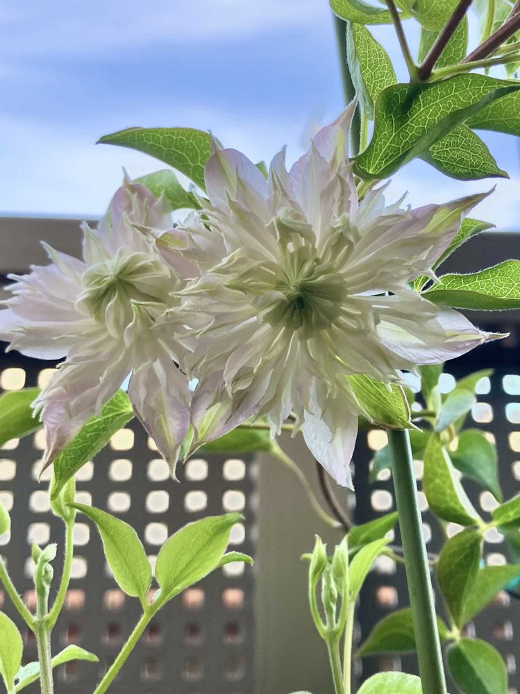 クレマチス初心者🔰なので、枯れてしまった時用にと3鉢もお迎えしたのですが案外強く、仕事場のベランダで元気に育ってます👍