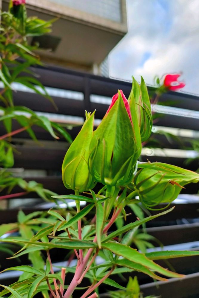 道端にモミジアオイが咲いて…咲きそうでした😍