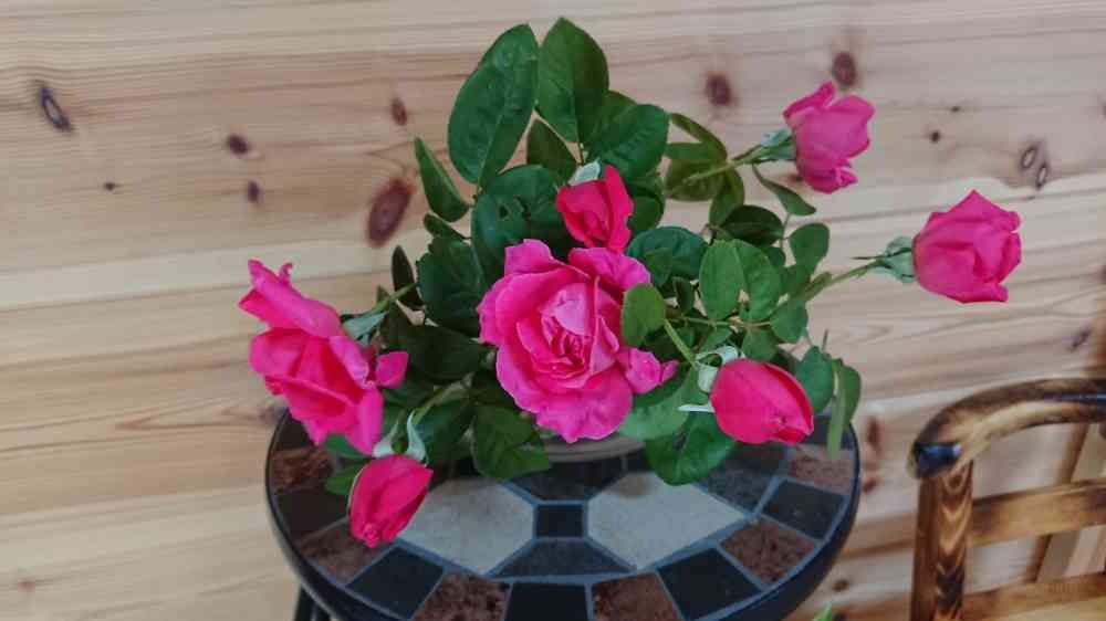 鮮やかなピンクの薔薇マリアカラスを切りました。秋にまた咲いてくれますように。