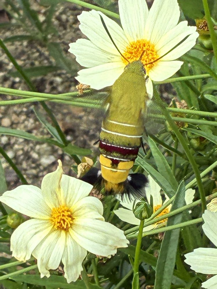 あっ、ホシホウジャクさんが夕食に来ました。🍽️😋🦋💚😄🌇👌