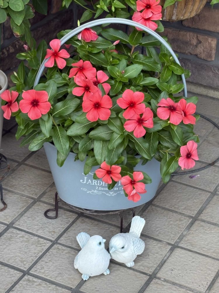 日々草タトゥー パパイヤ,ピンクの花,ダイソー雑貨の投稿画像