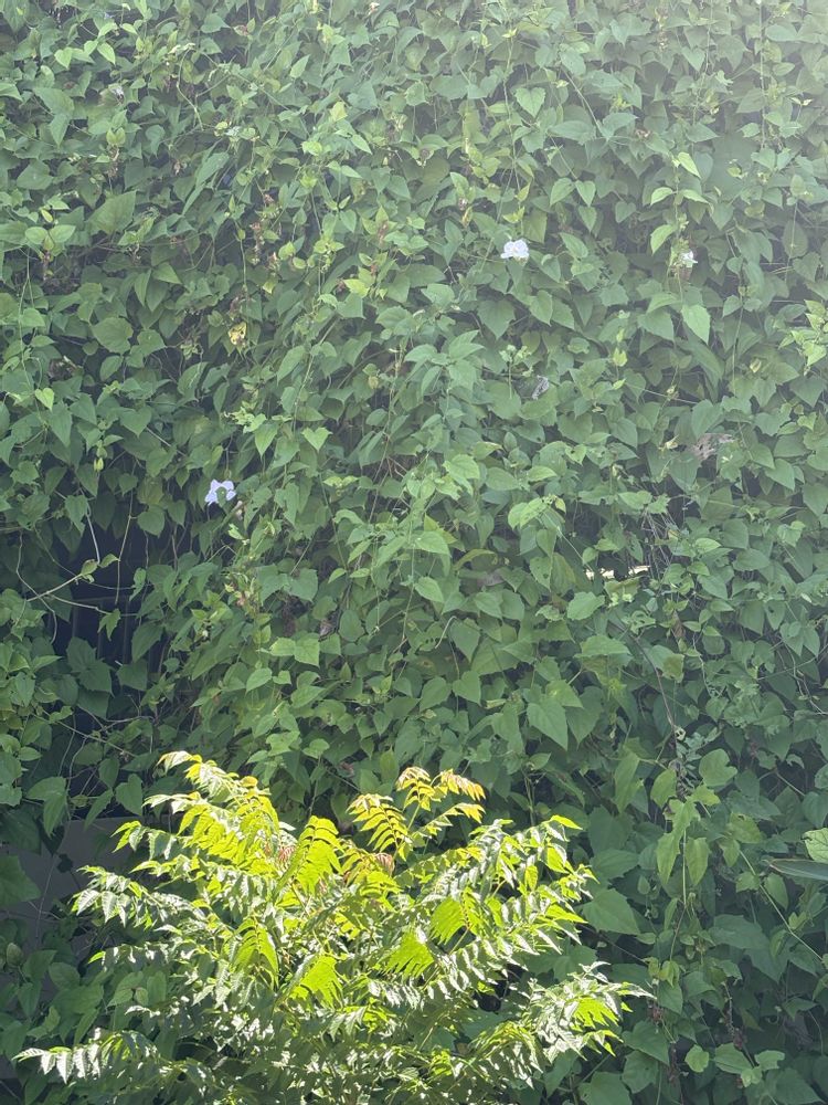 駐車場の側面にびっしり蔓を絡ませて涼しげに咲いていました