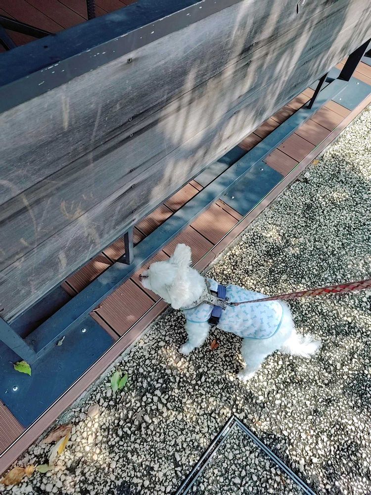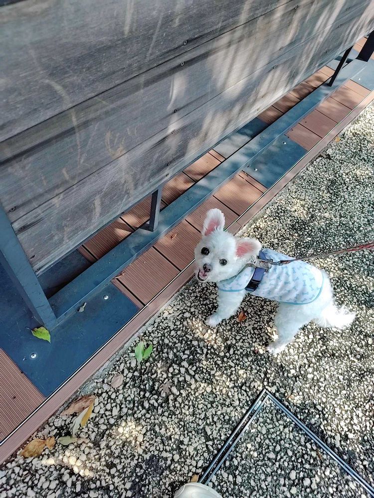 飼い主のコーヒーブレイク☕に付き合って食べる持参のオヤツが、ここを通ると‘’ある‘’のだと勘違い😅苦笑