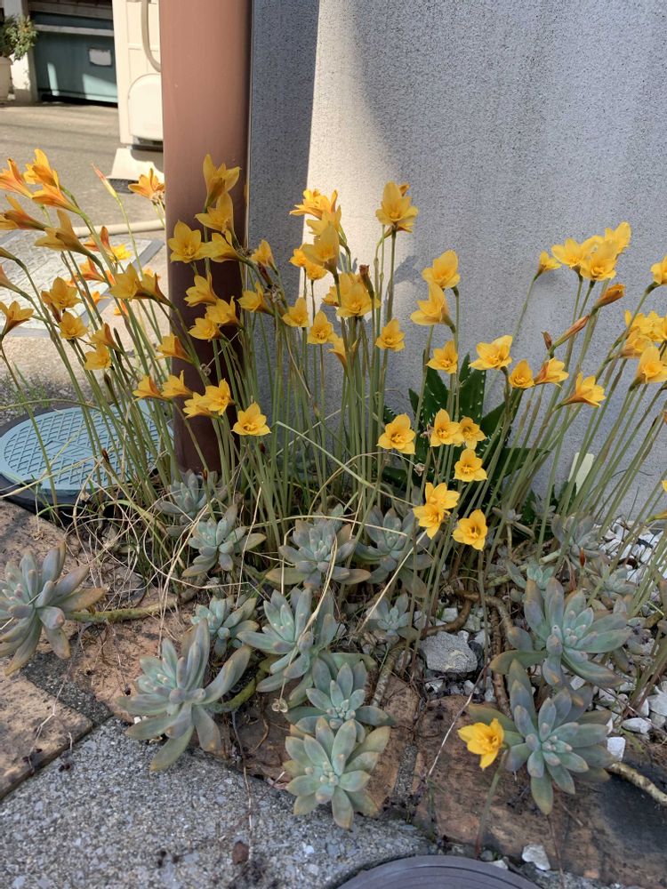 ③④お隣りのヘメロカリスの仲間は日があたっても元気! ⑤我が家のはやや日陰でないと葉焼け
