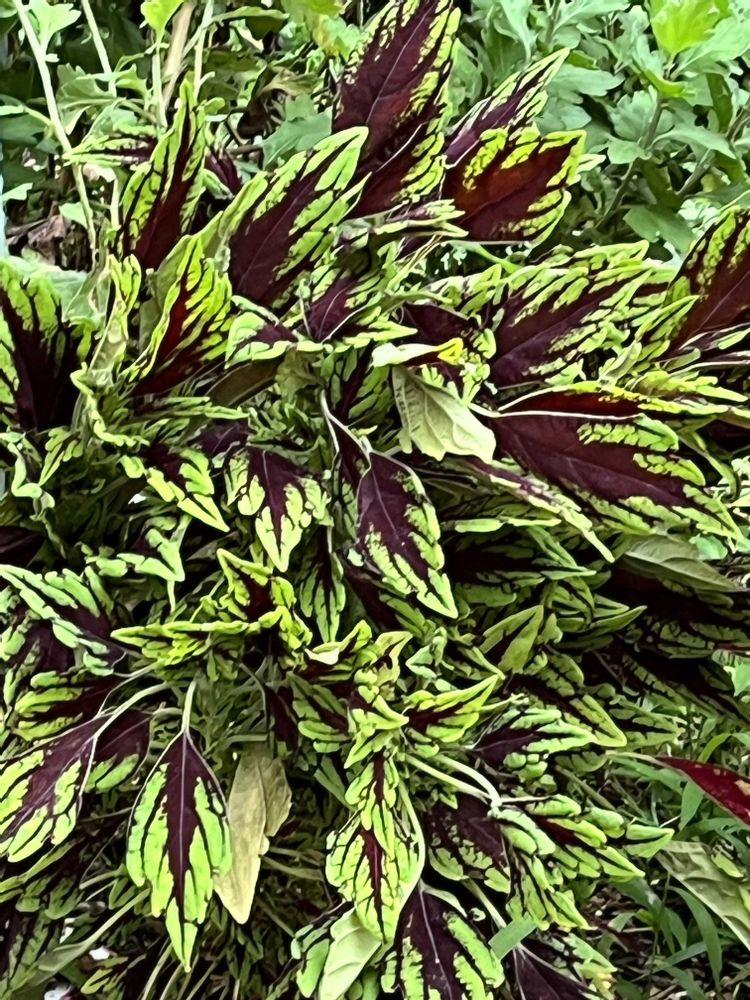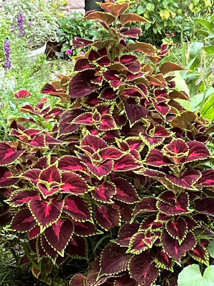 2枚目のコリウスの葉は、赤も混じって、凄い色でしたが2色になり、見て頂いてもいいかなぁ。