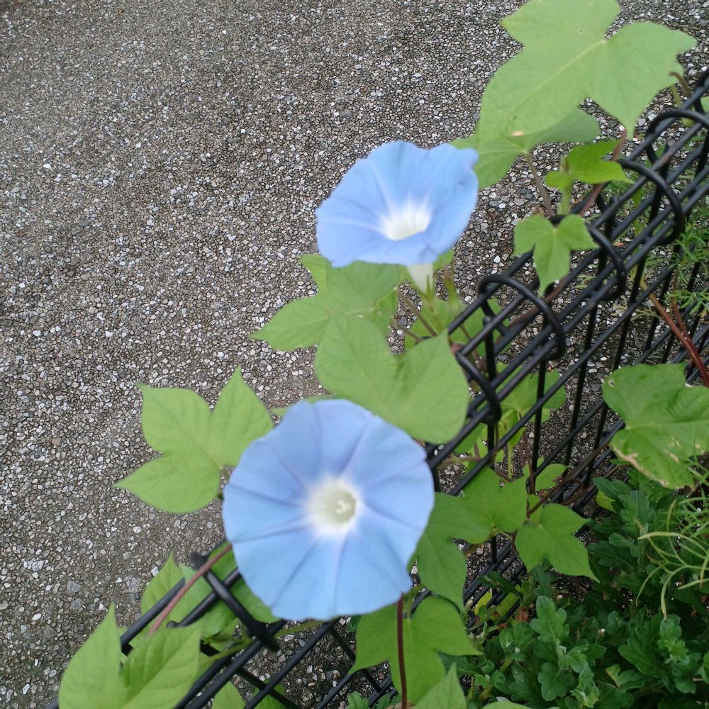 保護猫ならぬ保護種さんのアサガオ 涼しげなきれいな色ねぇ 恩返しだね😆