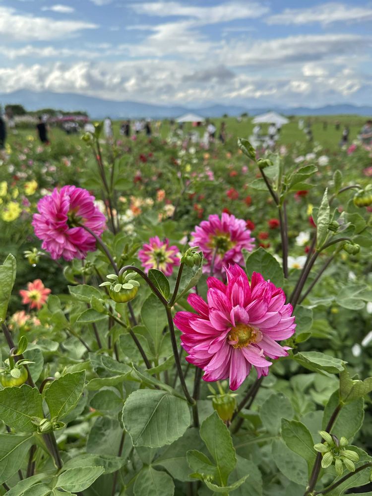 ダリアとジニアのお花畑。色とりどりのお花たち。ずっと見てても飽きない☺️