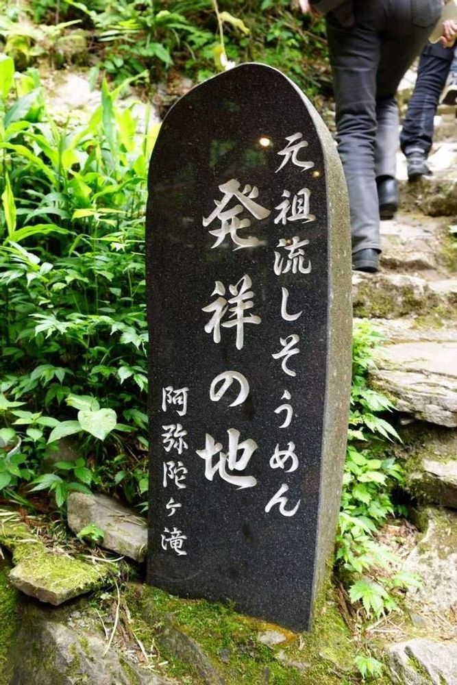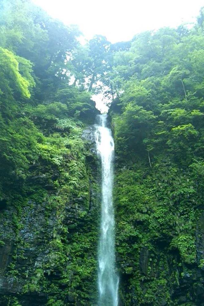 ここは葛飾北斎が描いたことで有名な落差 60 m の滝。滝までは石畳のような遊歩道でつながっている。