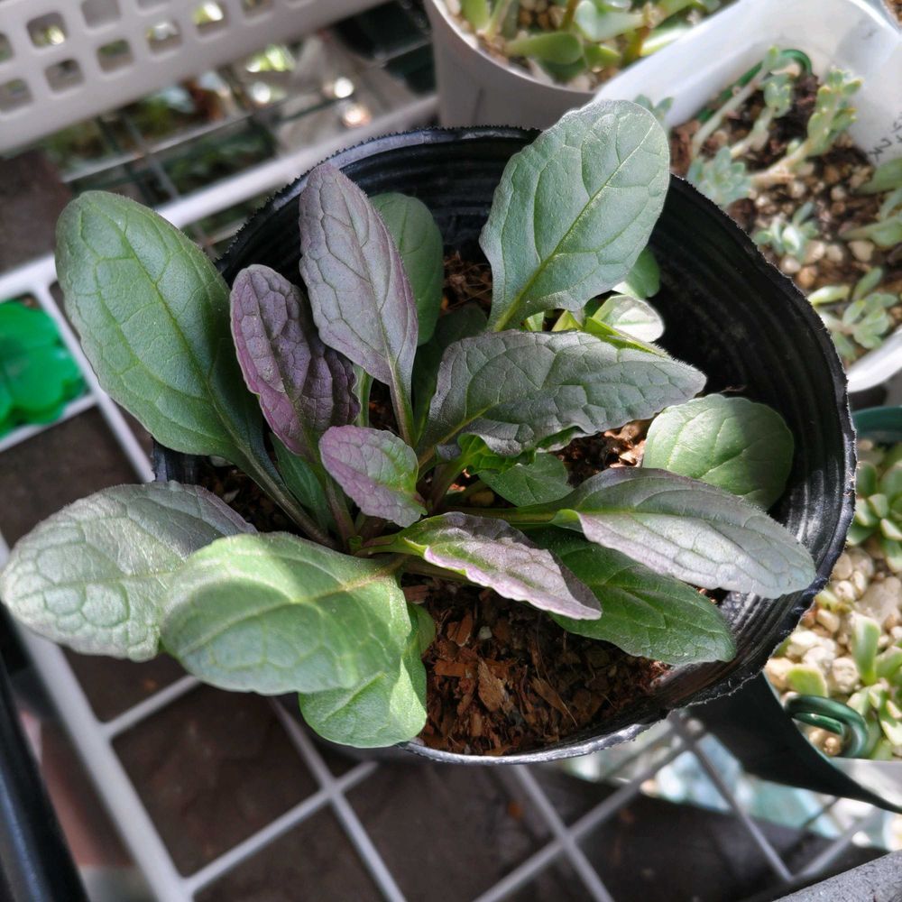 ②パンジーを植えていた鉢から、またパンジーかな?というような葉が出てきたので掘り起こして育てています。