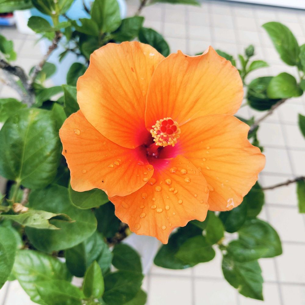 オレンジのハイビスカス🧡さんもよく咲いてくれますね〜🌺