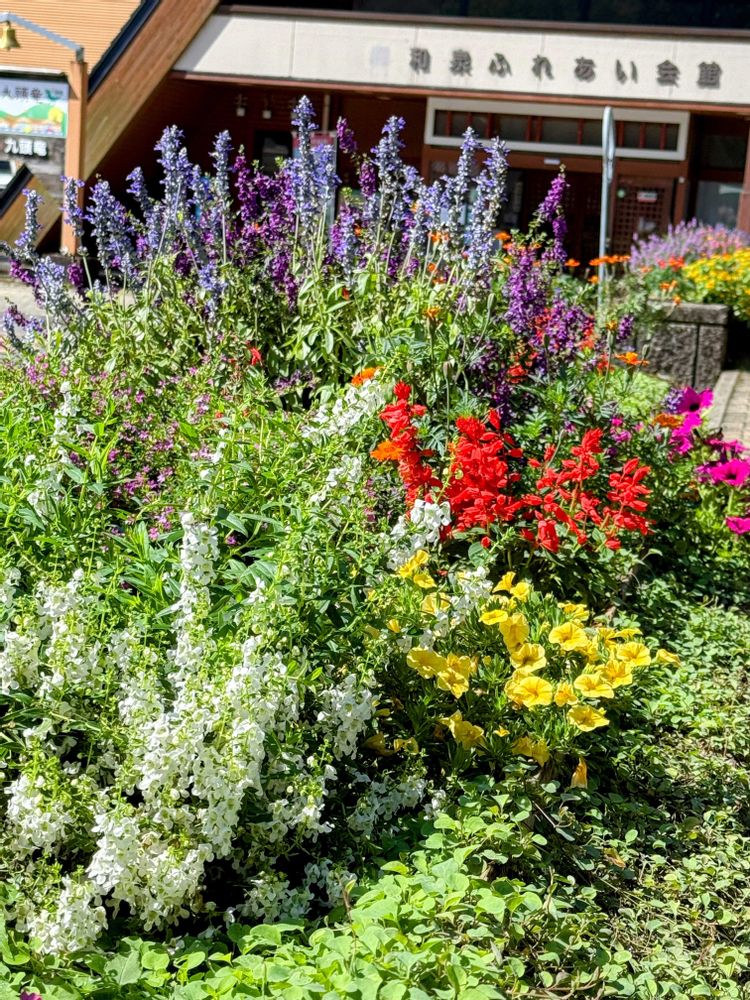 岐阜県へ向かう途中の道の駅「九頭竜湖」にある和泉ふれあい会館の前にはいろんなお花が咲いていました🌼🌿
