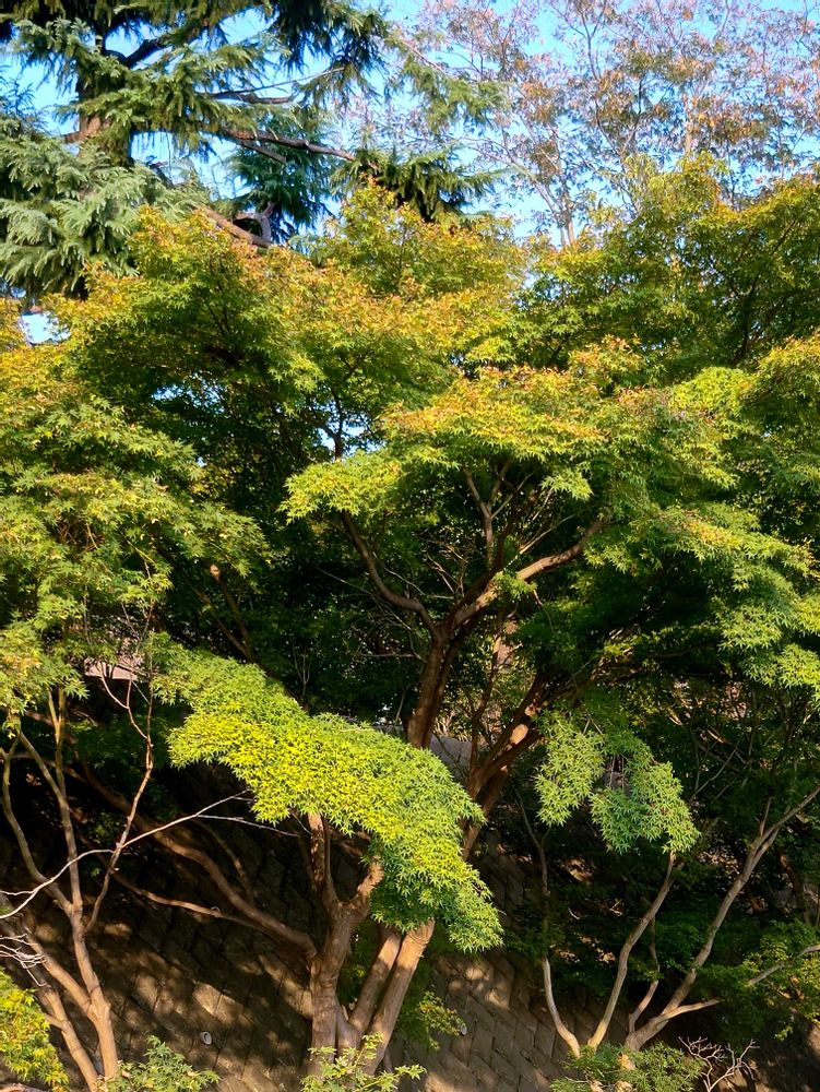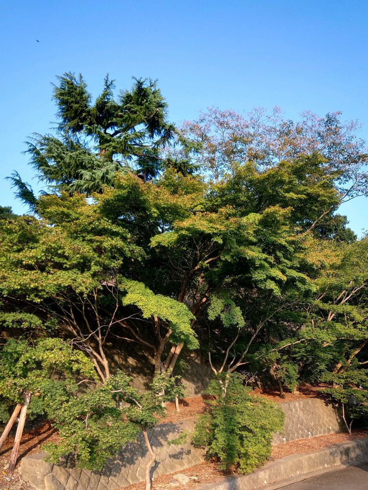気のせいですかね🤔 ちょっと色づいています? まだまだ暑いですけど、少しずつ準備しているのかな🍁(農業試験場にて)