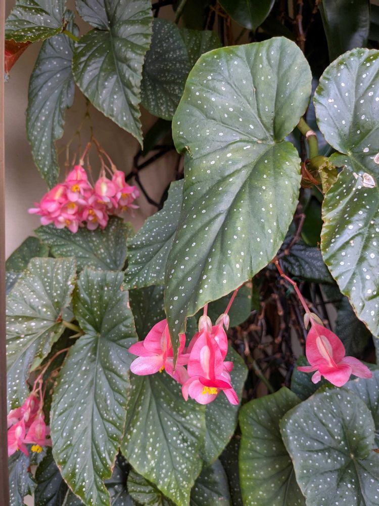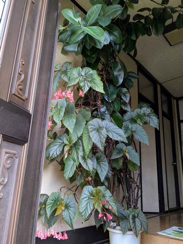 長寿52年目のゴムの木鉢に折れた木立ベゴニアを挿したらこんなに成長✌️🥰