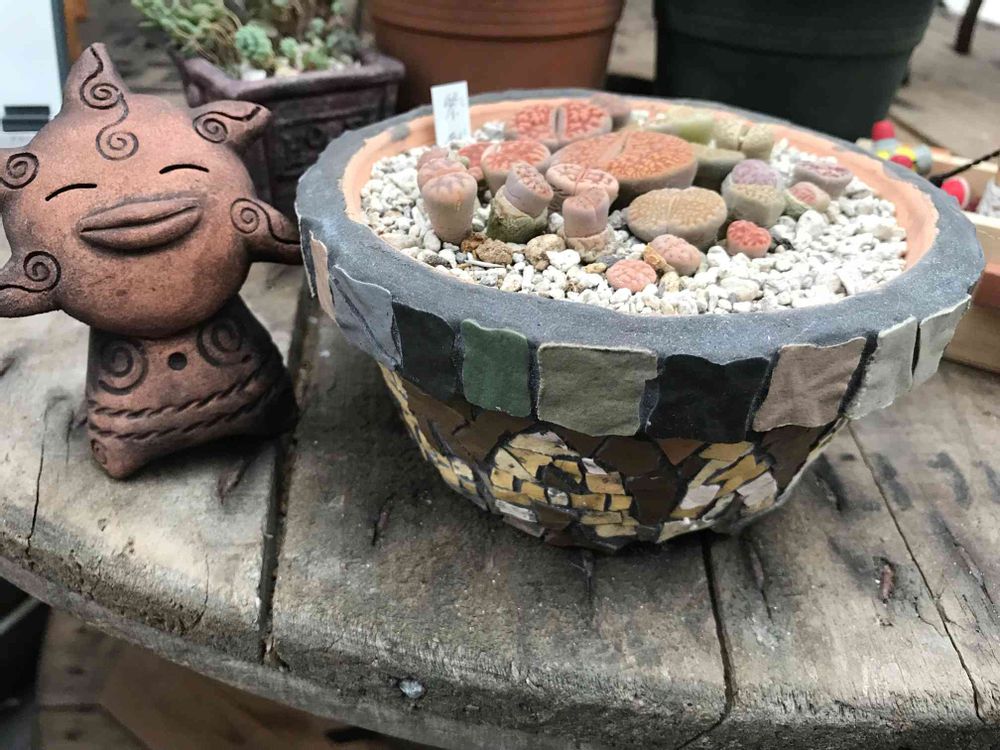 素敵な鉢ですね!モザイク模様になっているのかしら?