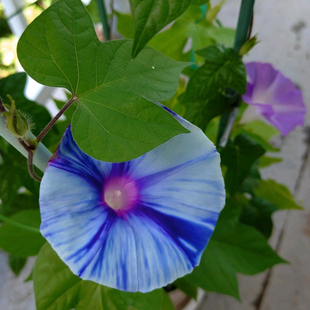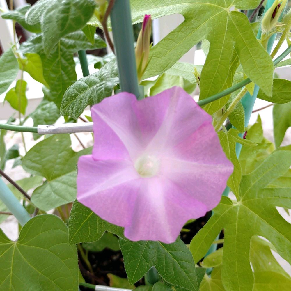 ①今日新たに見れたアサガオ 昨年咲いた淡い紫色のキキョウ咲きぽい花だったかと ③午後には薄ピンク色に変わっていて花弁は薄く繊細に。