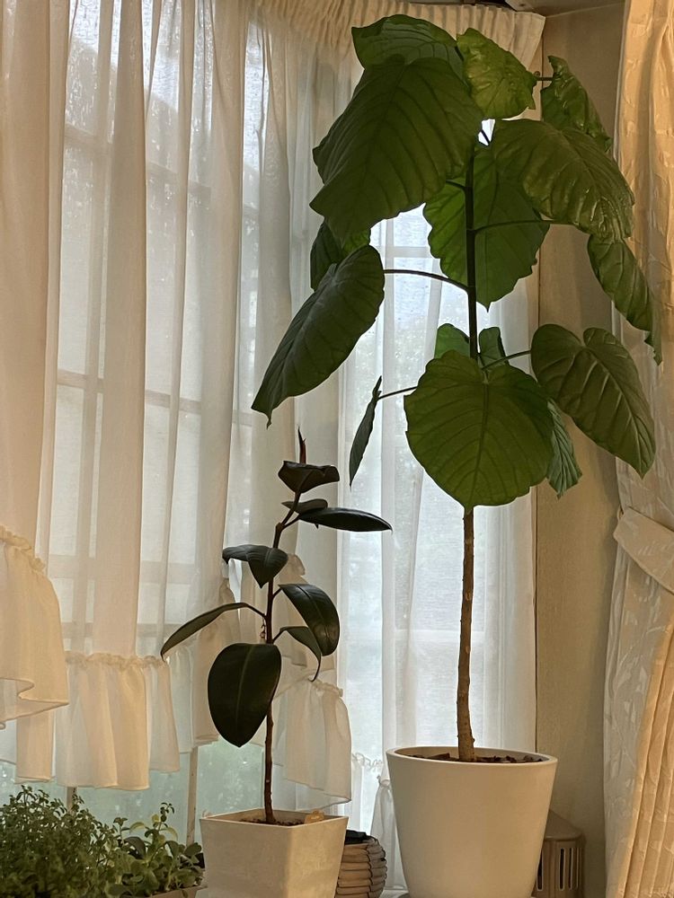 レースカーテン越しのウンベラータも元気→春ごろの2倍の丈に!