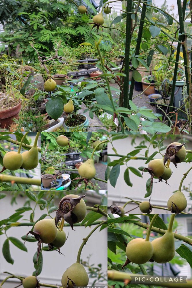 ⑤スパニッシュ ビューティーのローズヒップ大きくなってきました。