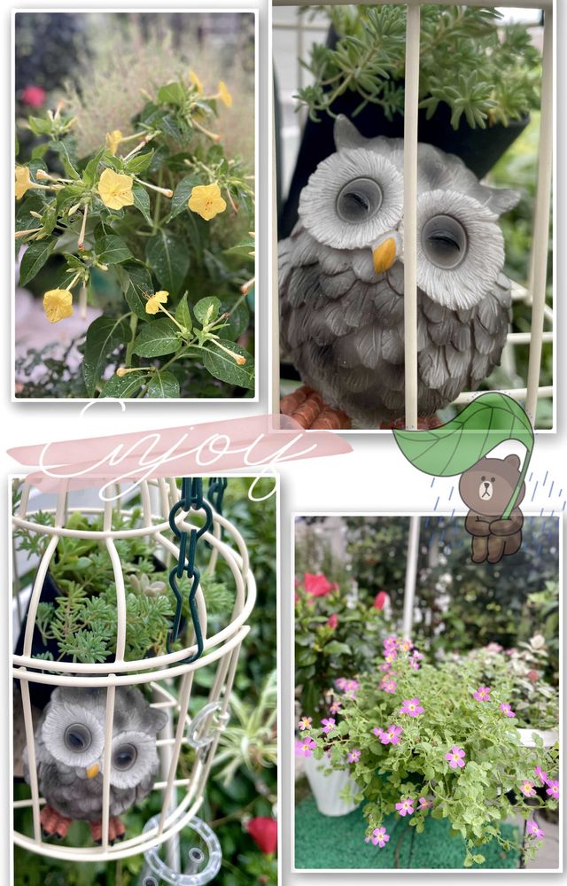 ジャメスブリテニアとお庭のアイドル クロちゃん🦉いつもニコニコっとしてるクロちゃんは お庭の番人してくれてる♪♪(๑ᴖ◡ᴖ๑)♪❣️