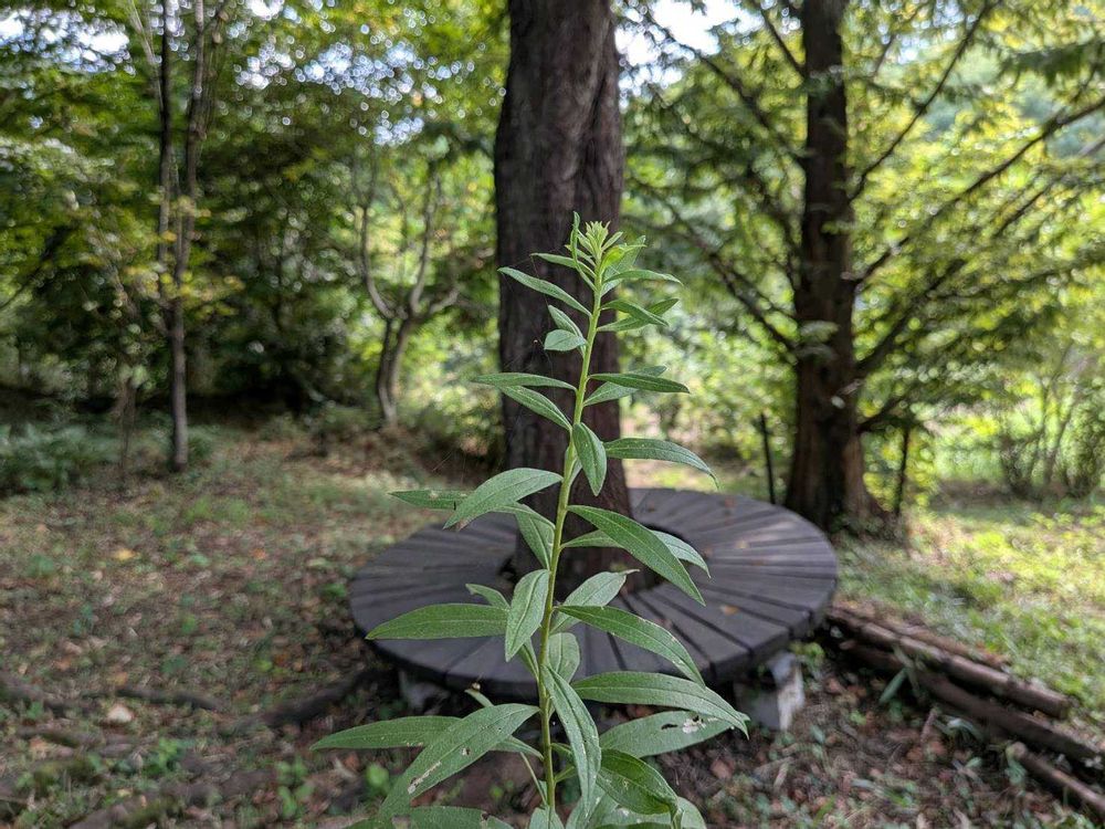 斜面のサークルベンチ前の背高泡立草は