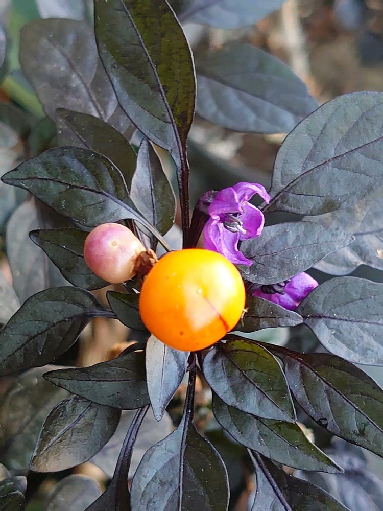 1️⃣ベランダの鑑賞用トウガラシ🟣🟠💜💚
