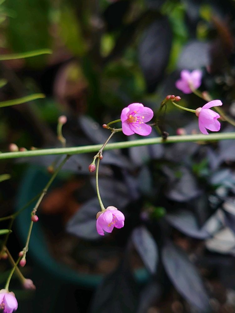 3️⃣ハゼラン🩷トウガラシのダークな葉の色を背景に💜なんとか撮れました😉