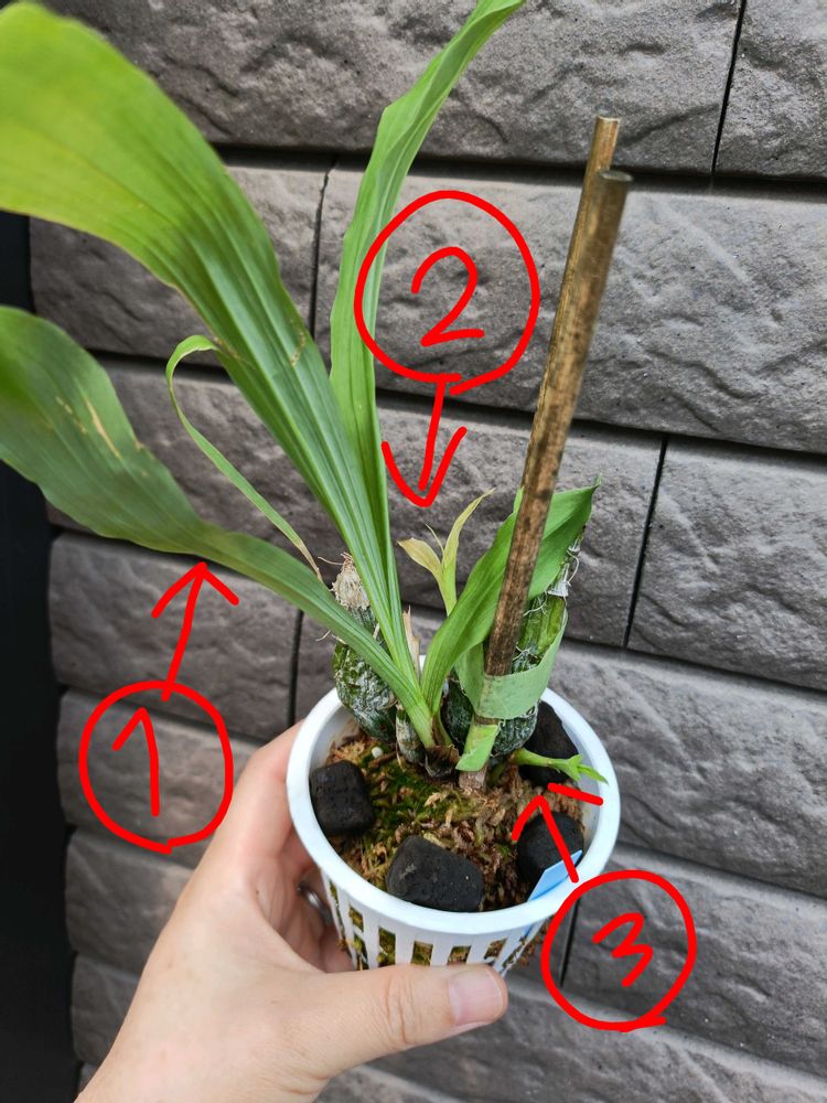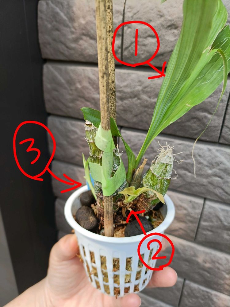 この小ささで完成してしまったこと&きっと今後もまたこのバルブから芽が出ることを考えると、次の新芽の栄養のために②は外しちゃったほうがいいのだろうか?とか、そんな余計なことはしない方がいいのだろうか?とか思いながら眺めている。