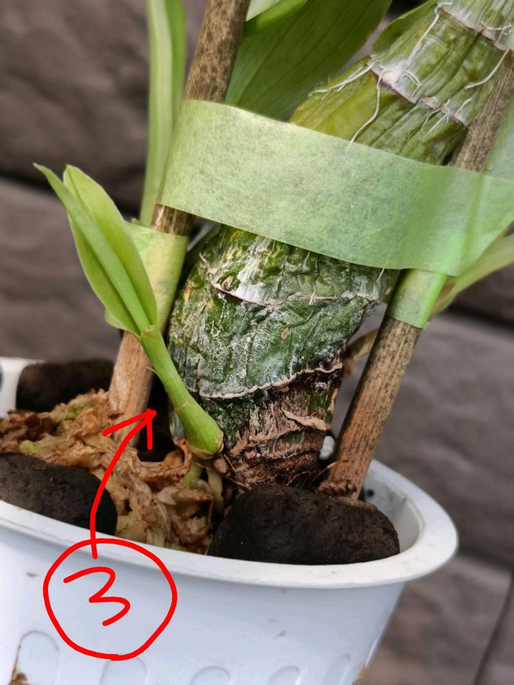 その後バックバルブから②③の順で新芽。どの芽も、他のタケノコに比べると大きくなるスピードが遅い気がする。