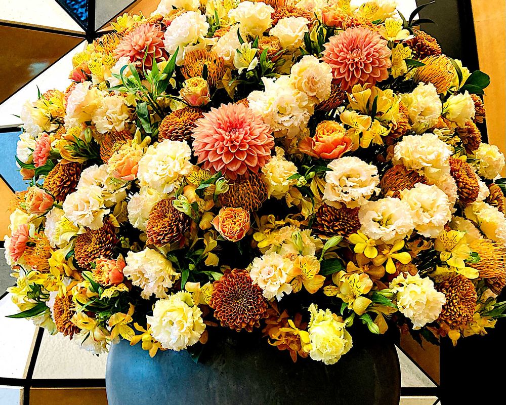 夏の名残りと秋への移行を感じさせてくれるマンションのロビー装花で、洋菊や薔薇、ピンクッション等と共に華やかに飾られていました❣️