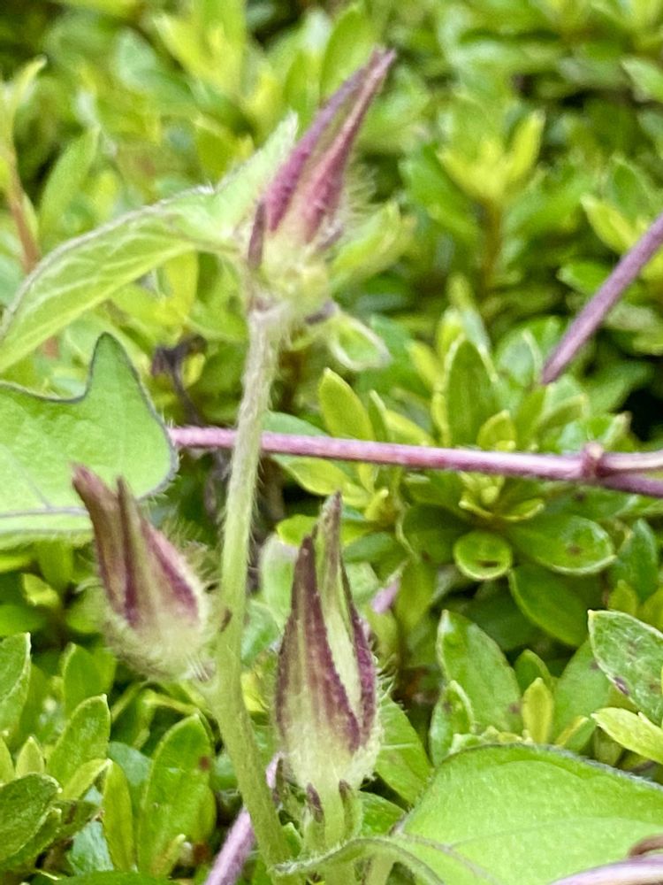 ④⑤3つの鉢から絡まって3色仲良く咲いてます🩷💜💟🎶