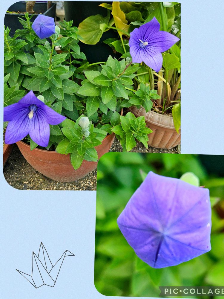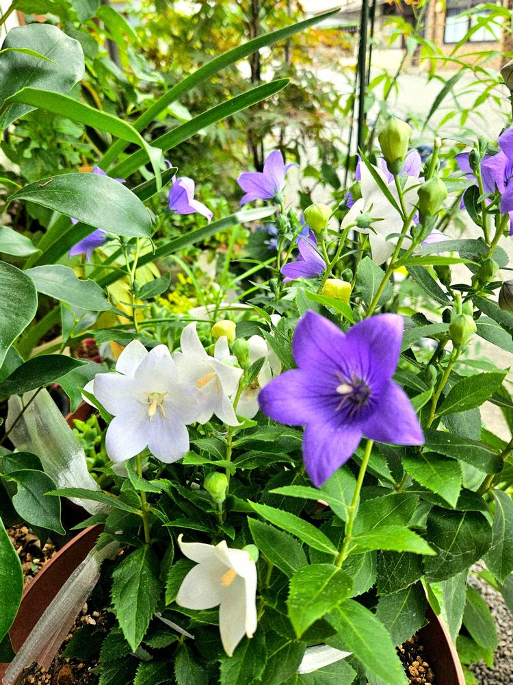 今日のお花(桔梗)キキョウ紫も白も可愛い💜🤍