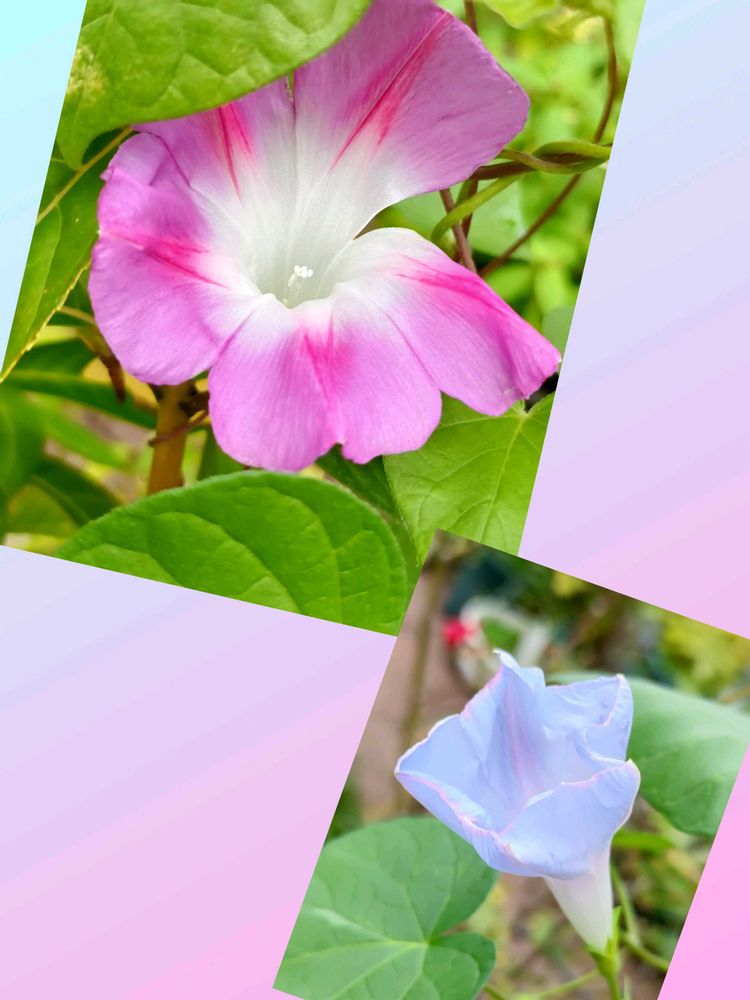 こぼれ種のアサガオは、色はかわいいんですけど、なかなか綺麗に咲いてくれなくて😅