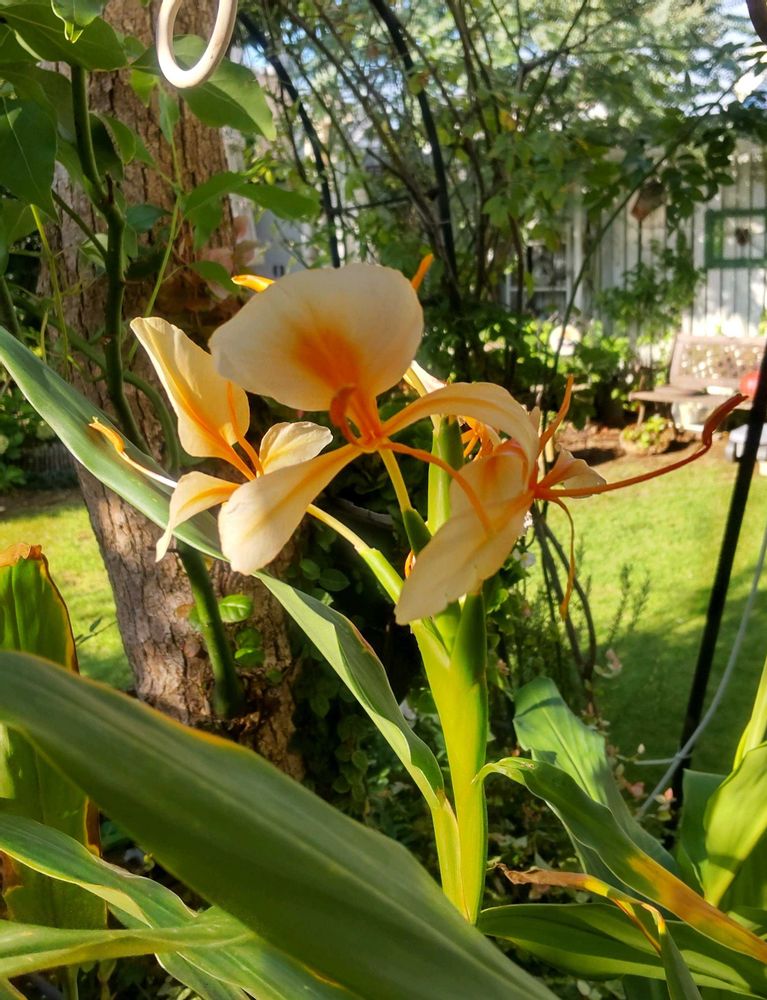 木が中心の庭です。 好きな所に好きな植物を植えています。 鳥さんがやって来て ... いろんな贈り物をくれました。私と鳥さんとの合作の庭です。 又、雑貨が好きで手作りが好きで、あちこちにぶら下がっています。