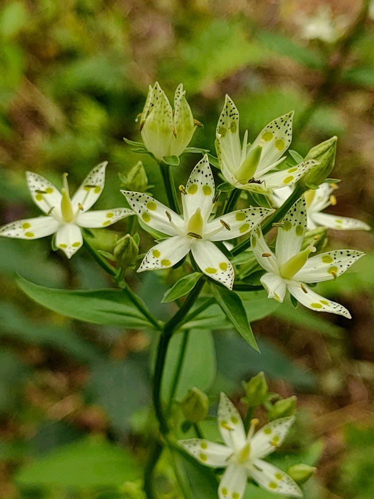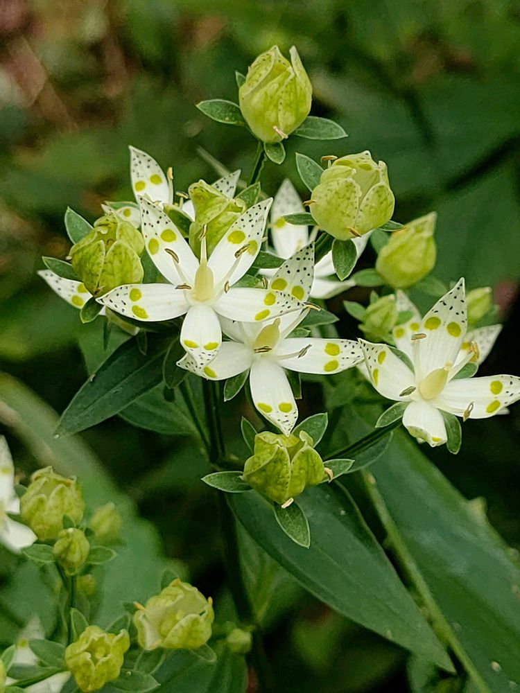 ✽花冠は1.8cmほどで花弁状に4〜5裂し、裂片中央に蟻が好む緑色の蜜腺が2個あり、その先に濃点が散在する