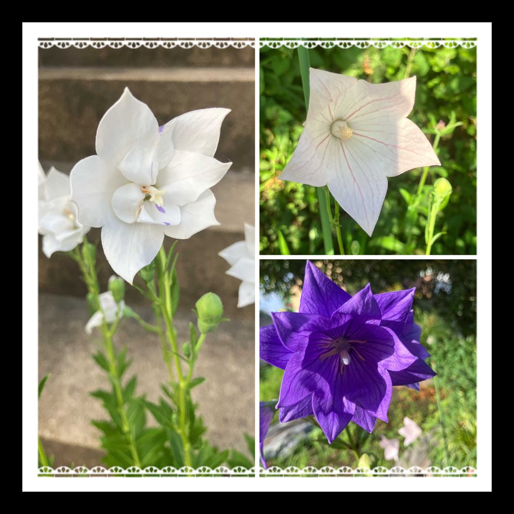 過去の写真ですが八重の白色と紫色、花友さんに頂いたピンク色のキキョウになります❣️